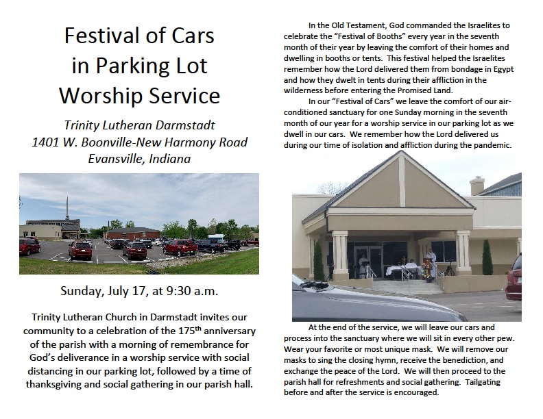 July 17 – Festival of Cars in a Parking Lot Worship Service